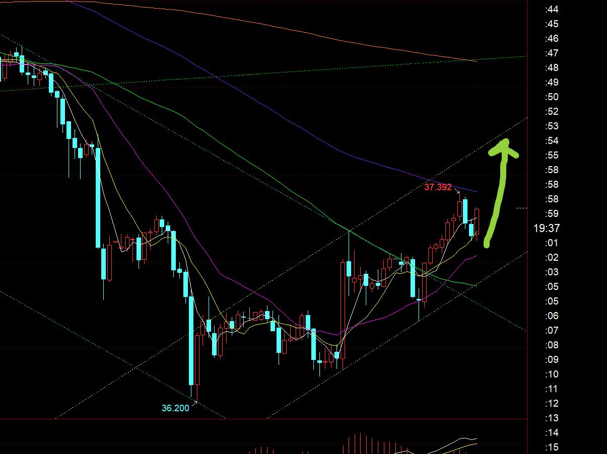 Second, silver: in the morning, the bottoming out and stabilizing K, then 36.65 directly followed the bullishness and finally reached the 37-37.2 target resistance reduction;