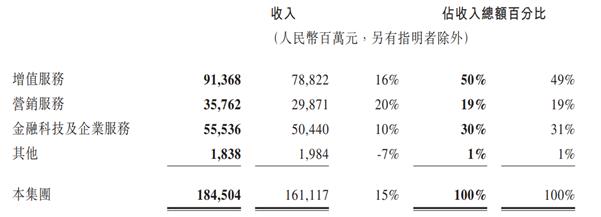 From business data, value-added services contributed 91.368 billion yuan of total revenue, accounting for 49.52%, nearly half. The revenue of value-added services is mainly contributed by game business, with local games contributing 40.4 billion yuan and international games contributing 18.8 billion yuan, the two increased by 17% and 35% year-on-year respectively. Social network revenue increased by 6% year-on-year to 32.2 billion yuan, and is also an important contributor to value-added services.