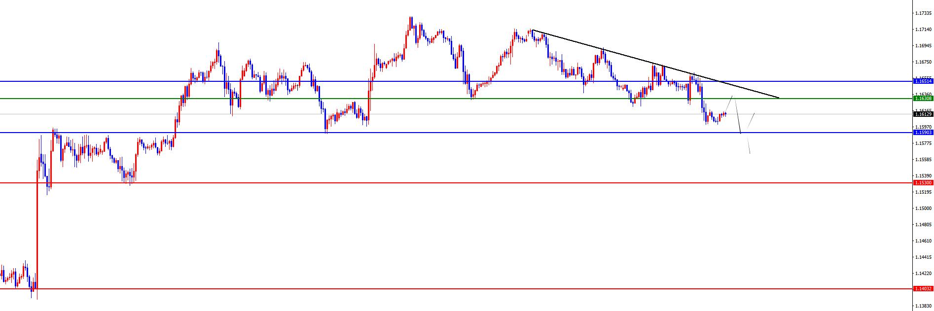 From a multi-cycle analysis, from the perspective of the monthly line level, Europe and the United States are supported at 1.0950, so long-term bulls are treated, and the monthly line ends with a large negative end. Therefore, when you are bullish, you need to pay attention to market adjustments. From the weekly level, the price is supported by the support of the 1.1590 area, and from the perspective of the mid-line, the price decline is temporarily treated as a correction in the mid-line rise. At the same time, it is necessary to pay attention to further retracement in the near future and pay attention to whether it can break down. From the daily level, the current daily resistance at 1.1650 as time goes by, and we will pay attention to further continuous performance in the future. According to the four-hour level, the current four-hour resistance is in the 1.1630-40 area, and continues toContinue to pay attention to the pressure. There is a correction in the short term of the price in one hour, so be cautious when chasing short positions, pay attention to the pressure after the rebound, pay attention to the gains and losses of the 1.1590 position below, and continue to see the continuation after the fall below.