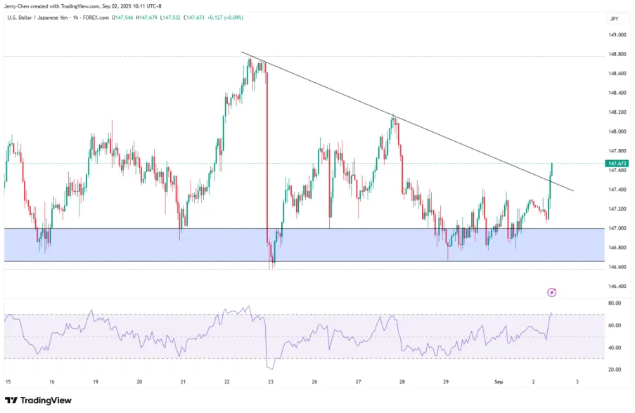 However, judging from the daily structure and the prospects of US-Japan interest rates (US interest rate cuts, Japan's interest rate hikes), it may take some time for the exchange rate to break away from the 147-149 area.