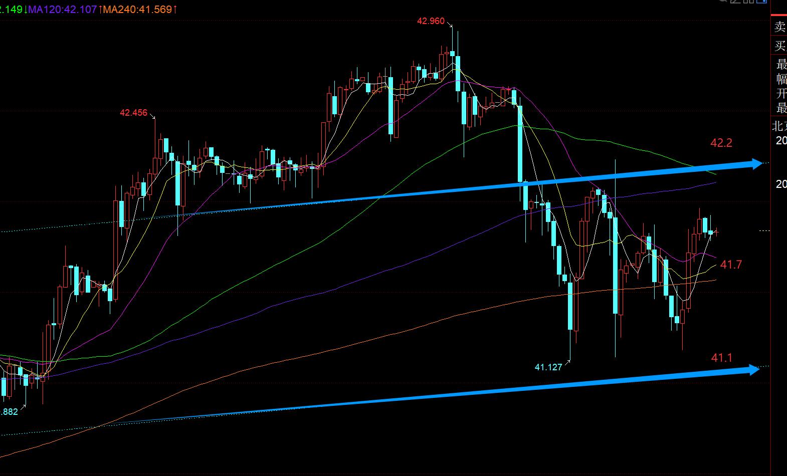 Second, silver square Surface: Yesterday, the white market retracement was obviously too large. When it fell below 42.1 and returned to the previous channel, the rebound confirmed that the upper track was still suppressed, which prompted the capital to adjust its position; then, the European session continued to weaken and fell to the lowest level of 41.1, approaching the lower track of the channel; the US session stabilized directly before and after, and the small V pulled up to test the 42.1 counter-pressure point, which was in line with the range 41.1-42.1; the trend in the second half of the night, even if the news came to the ground, the sales facts did not fall below the European session low. The main reason is that it was digested in advance;