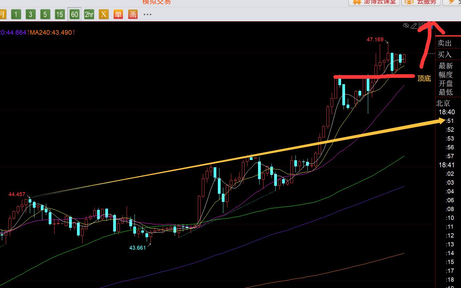 Second, in terms of silver: last Friday, it pointed out that 44.8 is bullish, and it rose sharply on the 46 mark that day, and the bottom position is also We must insist on holding on and looking at a higher position. Today, it is indeed a strong upward trend. After breaking the 47 mark, the bottom position has basically had a profit of 100 meters in just two days.