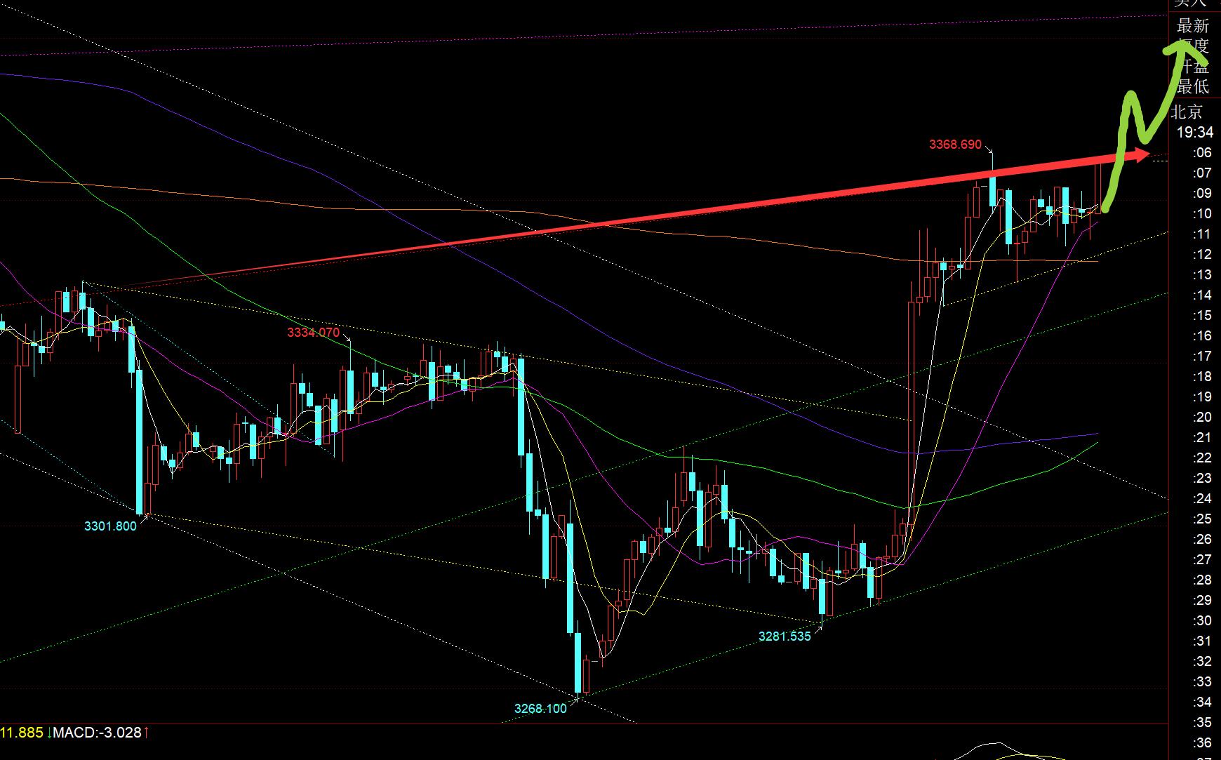 segundo, nivel de línea diaria de oro: la tendencia corta diaria también sigue siendo alcista. La consolidación en los últimos tres meses es un período de corrección, el punto bajo se mueve gradualmente hacia arriba, y el punto alto suprime el rango de 3450-30 tres veces, por lo que la cuarta vez aumenta, lo que aumentará la probabilidad de romperse hacia arriba; El resultado final es básicamente tarde o temprano se romperá, solo espera el tiempo. Cuanto más largo sea de lado, una vez que los laterales se rompan en la etapa posterior, la fuerza del mercado alcista o el tiempo será relativamente bueno, y vale la pena esperar y esperar. El viernes pasado, la parte inferior está llena de una gran K positiva, y se encuentra firmemente en el promedio móvil de 5, y regresa al canal de triángulo de convergencia anterior. Entonces hoy, básicamente seguiremos luciendo optimista. El retroceso de retroceso confirma que el menor soporte del triángulo de convergencia es de aproximadamente 3345-48, que también es el promedio móvil de 10. Después de la prueba de mercado blanco de hoy, de hecho hay un rendimiento de apoyo. La pista superior se centra en la línea 3410;