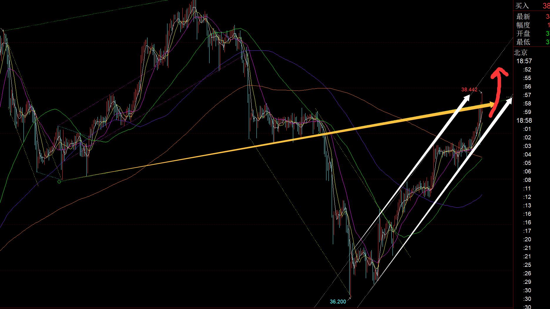 segundo, el canal ascendente fluctuó y se levantó hasta el final, y todavía es bueno en la actualidad. El apoyo de 37.6 ayer estuvo relativamente en línea con él, y finalmente alcanzó el objetivo 38.3 hoy;