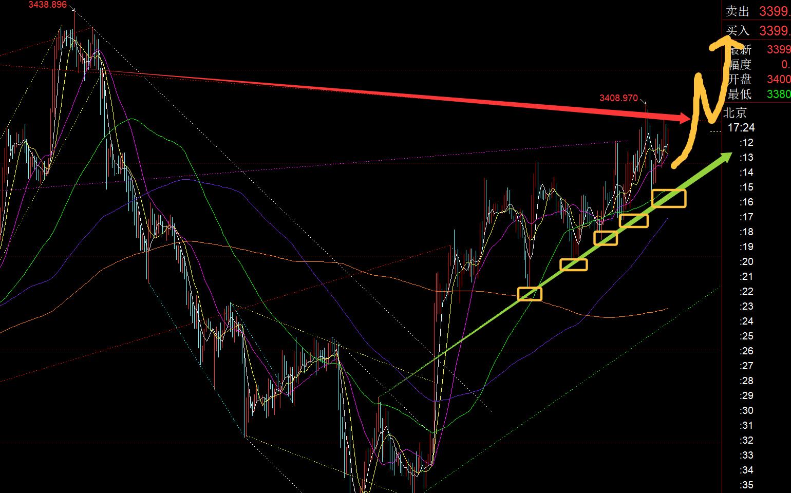 El punto de plata de Zheng: el oro se elevó gradualmente de una manera paso a paso, y se espera que se mantenga firme en 3400 esta noche para hacer más esfuerzos