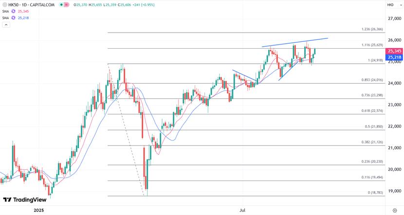 XM Hong Kong Stocks: Hong Kong Stocks subió a la marca de 25,000 en el último día de negociación de agosto, hasta 1.2% durante el mes entero. El mercado continuó su tendencia ascendente el primer día de septiembre, y el índice Hang Seng abrió 430 puntos más alto esta mañana. El medio día aumentó 442 puntos o 1.8% a 25,520 puntos; El índice nacional aumentó 138 puntos o 1.5% a 9,085 puntos; El índice de tecnología Hang Seng aumentó 100 puntos o 1.8% a 5,775 puntos, y el mercado continuó aumentando por la tarde.