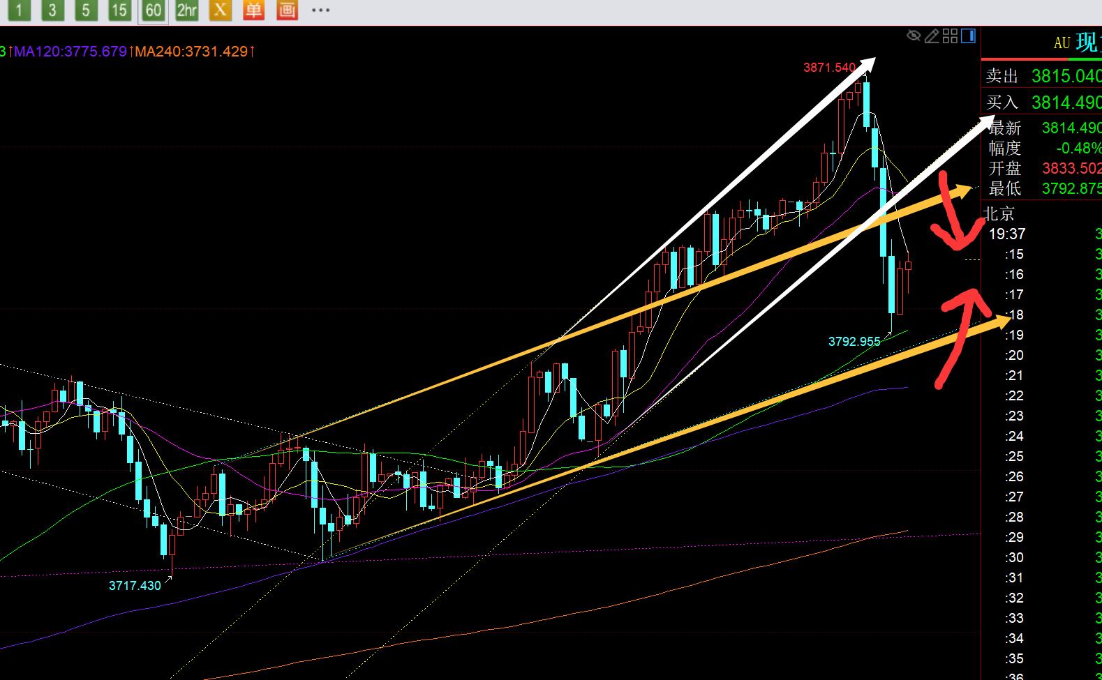 A continuación, se espera que la oscilación se repare esta noche, y se suprimirá de la posición alta a la baja, que es de 80 metros, y el espacio no será demasiado grande. El primer soporte es la posición de vía inferior del canal amarillo en el gráfico, que también es la línea 3790 de punto superior e inferior, seguido por el soporte de línea de medio año de 3776, que simplemente corresponde al promedio móvil de 5 diarios; La resistencia es la pista superior de la línea de presión inversa del canal amarillo 3830-35, que también es una división de 50Resistencia y la línea 3841, 618 divide la resistencia, el punto de presión inversa del riel inferior del canal blanco (este canal blanco no se dibujó de antemano y el punto más alto intradía justo bajo presión sobre su riel superior); Por lo tanto, confíe en el tratamiento de reparación de oscilación entre el apoyo y la resistencia, y luego mire las ganancias y pérdidas. Si se mantiene hasta 3830, 3835, o incluso 3841 nuevamente, entonces el breve retroceso termina al instante y regresa a una pull-up fuerte; Si cae por debajo de 3790, o incluso 3775 hacia abajo, el ajuste hacia abajo continúa expandiéndose; Antes de que ambos lados caigan, se tratarán de acuerdo con la oscilación del rango;