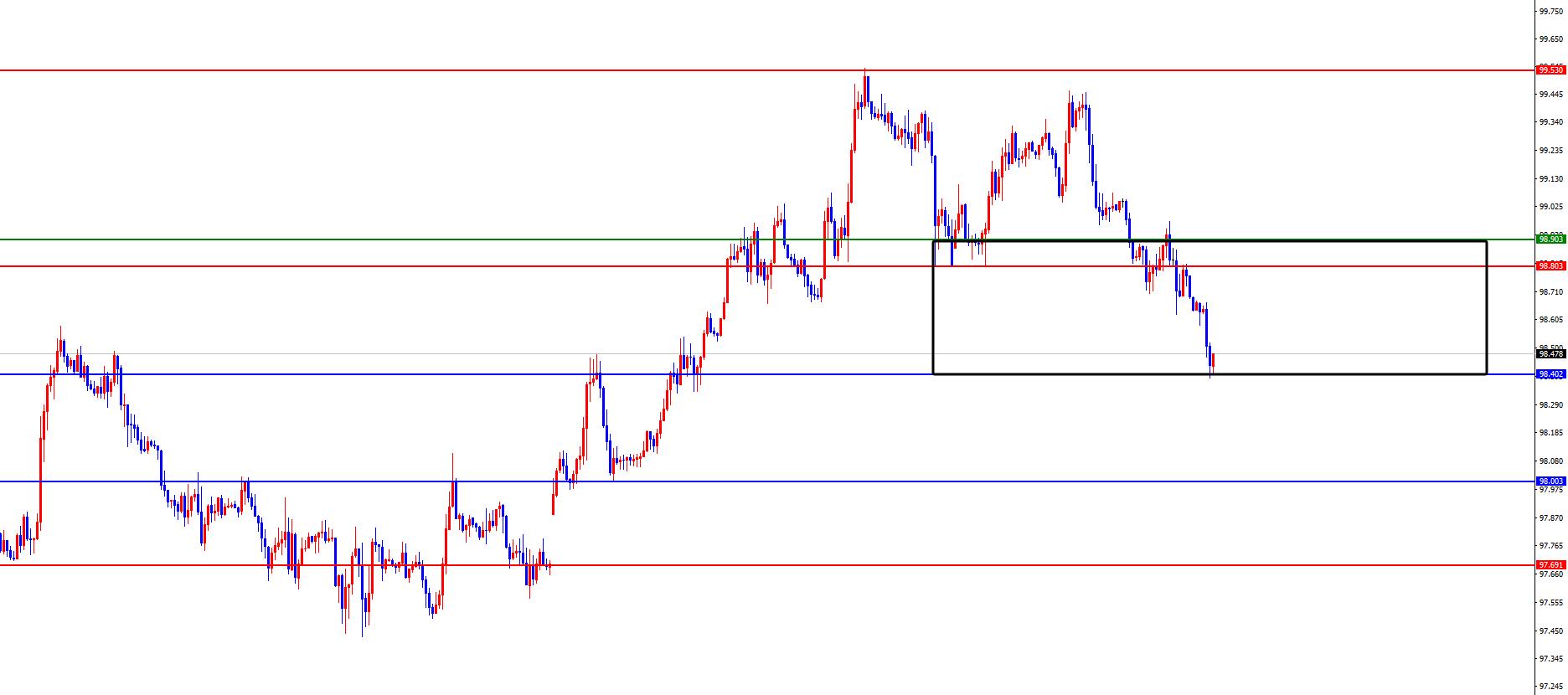 L'indice statunitense è caduto sotto pressione www.xm-forex.come previsto e l'attenzione a breve termine è concentrata su 98Intervallo .40-98.90