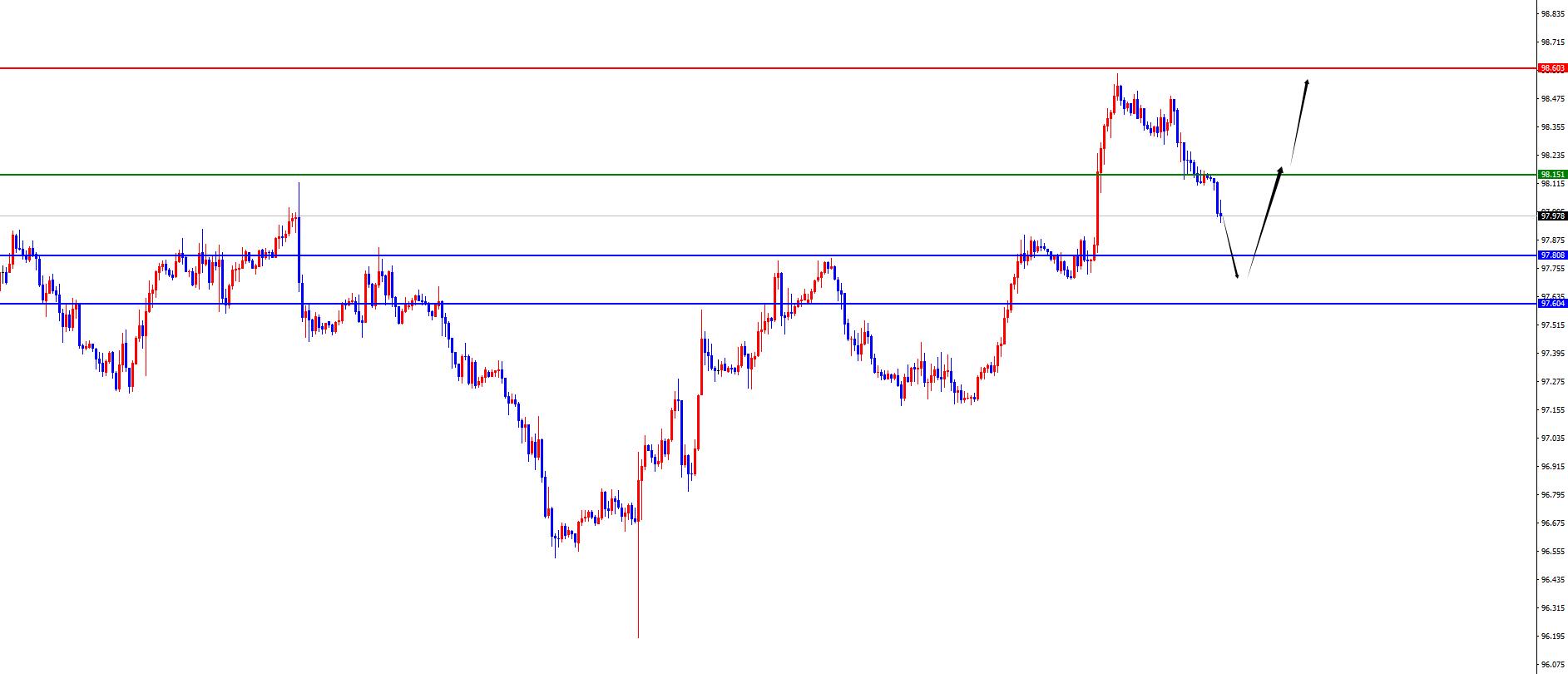 O índice em dólares dos EUA tem um longo alcance de 97.60-70, www.xm-forex.com uma defesa de 5 dólares e um alvo de 98.10-98.50