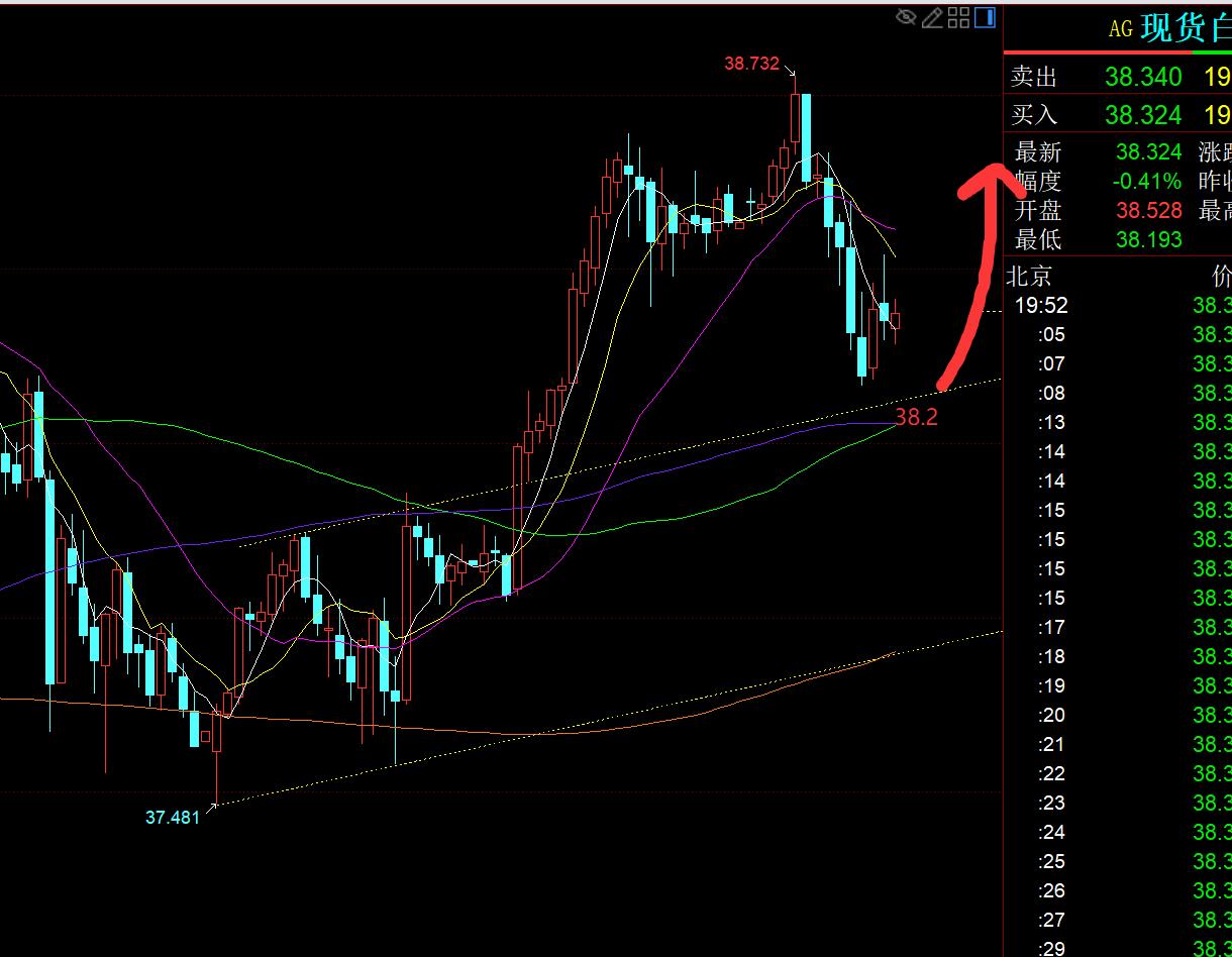 第二,白銀方面:昨日早間直接強勢突破站上38節點壓力,則提示穩住此位置,將開始走強,先沖38.5;歐盤成功抵達38.5,整體維持連陽格局,美盤就看二次拉升;由於是走強,就不能等太多的回測,研報給出38.35企穩就可繼續看漲,剛好觸及它,今日早間拉升38.7拿下;