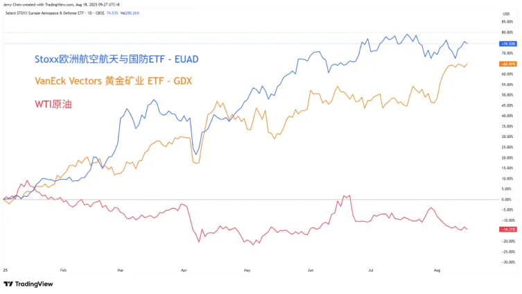 軍工股、黃金和能源市場或對地緣局勢的進展較為敏感,下圖顯示相關標的的全年漲跌幅對比。對能源市場來說,若特朗普放鬆對俄羅斯原油出口制裁且聯手俄羅斯在阿拉斯加進行天然氣開發,原油和天然氣價格恐持續承壓。