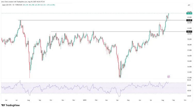 日經指數連續兩周大幅上揚且接連刷新歷史新高。美日貿易和關稅談判的塵埃落定掃清了圍繞在日本股市上的不確定性,利好於出口型企業(如豐田等車企)的盈利前景,全球投資者再次回歸。