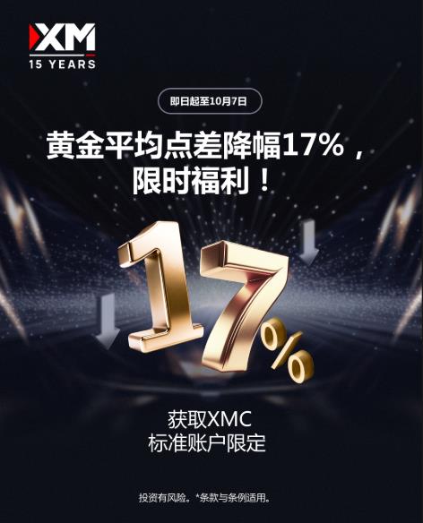 現在,XM為你帶來前所未有的黃金點差福利:平均交易成本立減17%