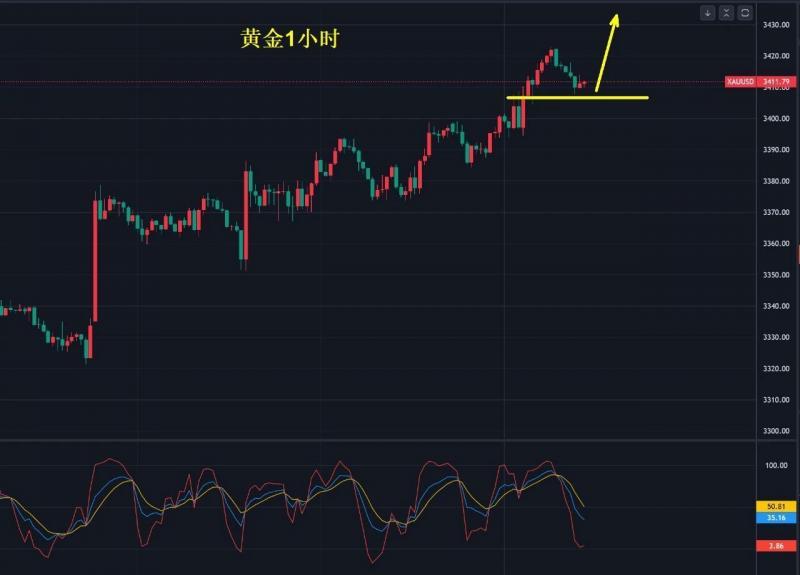 今天,3410-05的範圍內可以直接多,首要目標看到3428-30美元,一旦突破7月22日盤中高點3435將向下一站3447美元邁進靠攏!