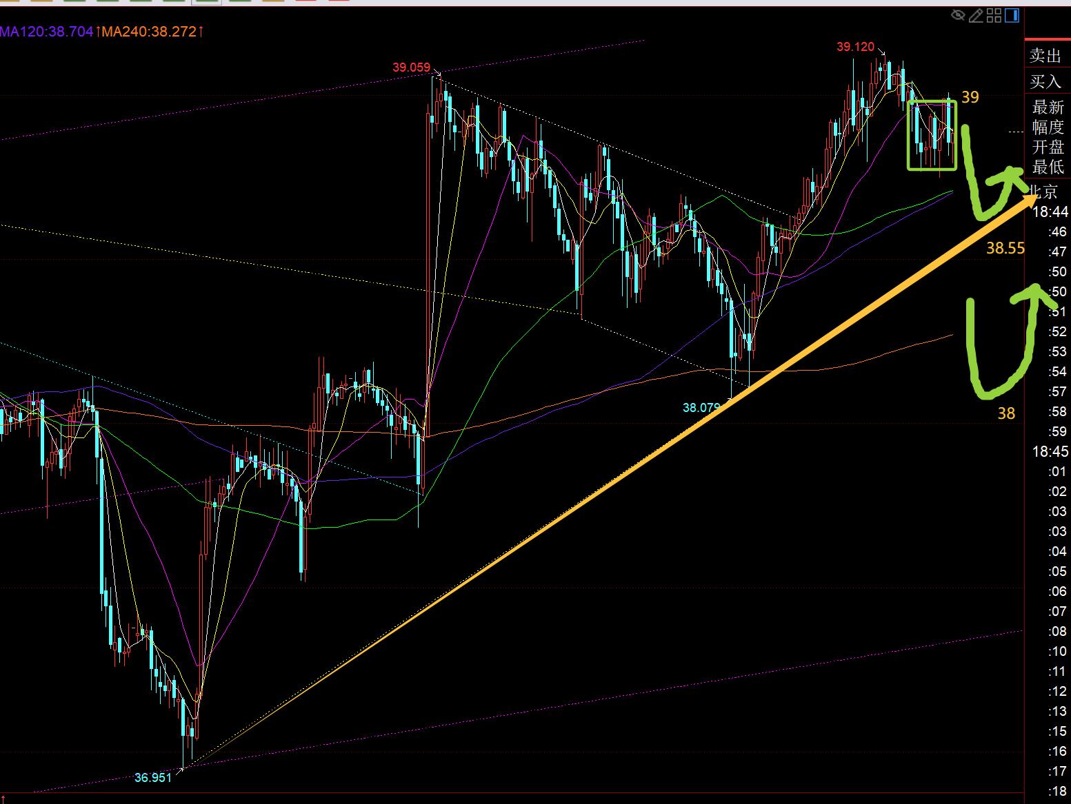 第二,白銀方面:昨日再次一路強攻至39美元之上,當亞歐盤一路慢漲破高時,美盤參考研報,支撐38.8上看二次上拉,也的確漲至39.1;