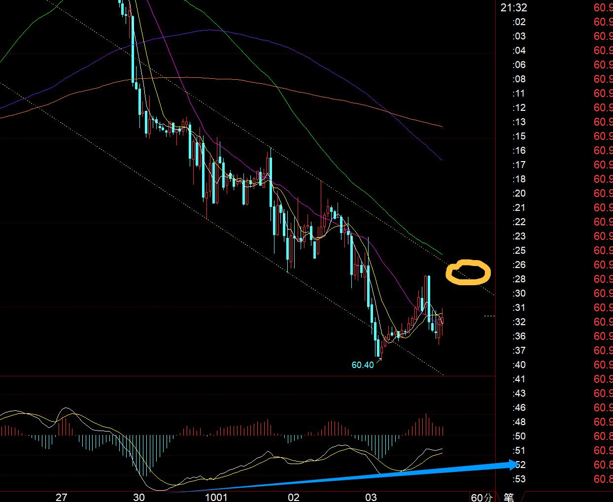 原油方面:雖然短期還是弱勢下滑,但一直處於底背離,這種下跌或在醞釀後期的超跌反彈修正;通道下軌支撐關注60之上,阻力61.4上軌,什麼時候有效突破上軌站穩了,那麼超跌反彈也就啟動了;