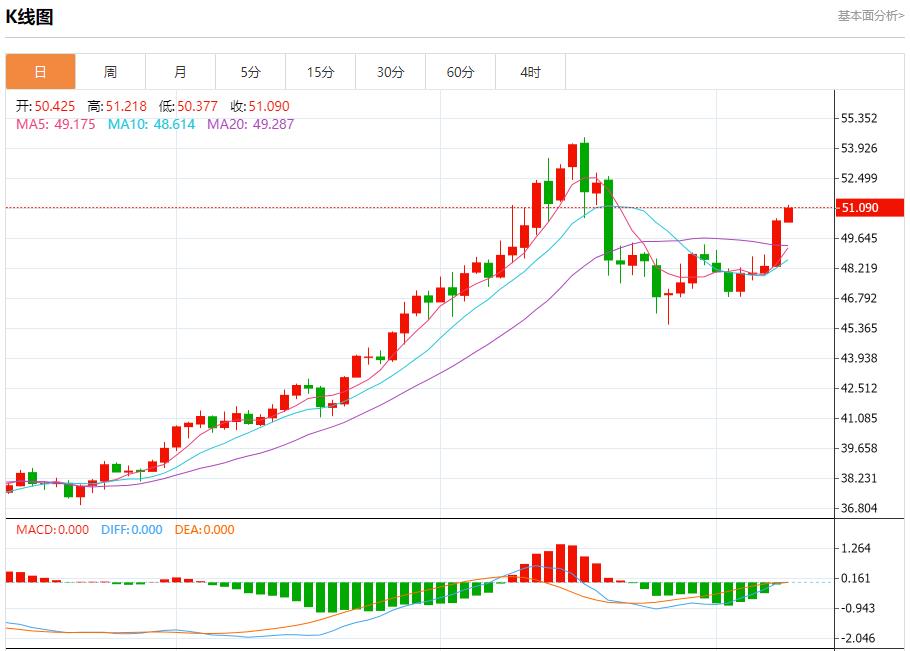Spot-Silber: Ab 21:20 Uhr Pekinger Zeit ist Spot-Silber gestiegen und wird nun bei 51,087 gehandelt, was einem Anstieg von 1,22 % entspricht. Vorbörslich in New York stiegen die (Silber-)Preise am letzten Handelstag weiter an, obwohl nach dem Erreichen überkaufter Niveaus negative Signale beim Relative-Stärke-Indikator auftauchten, um aus diesem überkauften Zustand herauszukommen. Dies zeigt die Stärke und das Volumen des Aufwärtsmomentums, insbesondere angesichts des anhaltenden positiven Drucks, der durch den Handel oberhalb des EMA50 erzeugt wird, und der Dominanz der kleinen Bullenmarktwelle auf kurzfristiger Basis und ihres Handels entlang der Trendlinie, was diese Entwicklung verstärkt.