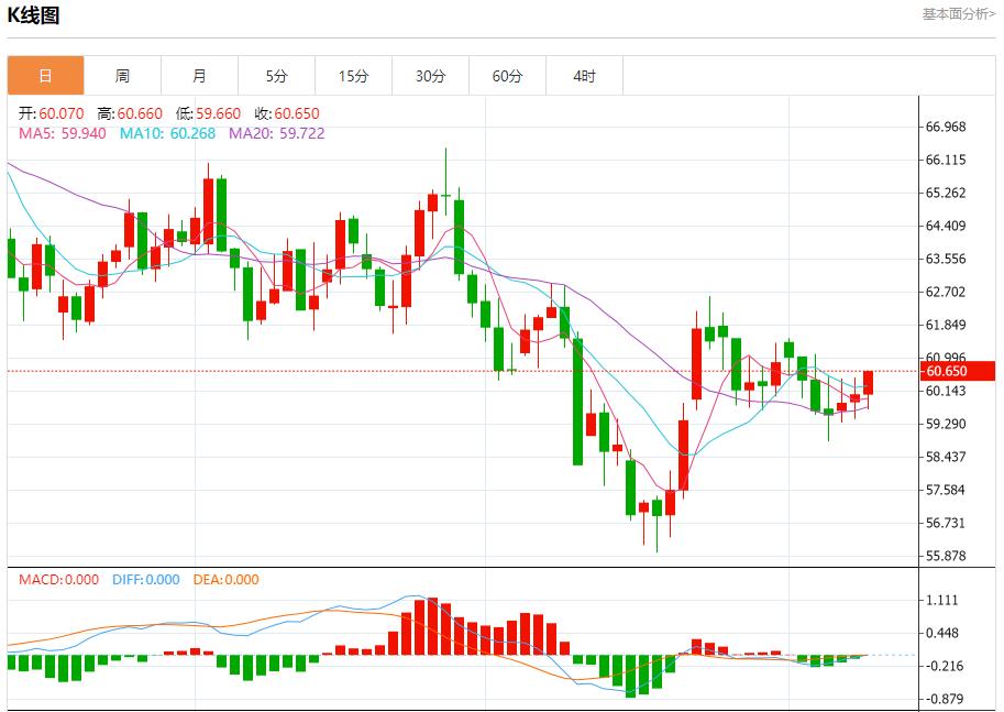 Rohölmarkt: Ab 21:20 Uhr Pekinger Zeit stieg der US-Ölpreis und wird nun bei 60,650 gehandelt, was einem Anstieg von 0,88 % entspricht. Vor der New Yorker Sitzung stieg der Preis für (Rohöl) im letzten Intraday-Handel, unterstützt durch das Aufkommen positiver Signale vom Relative Strength Index, und versuchte, alle negativen Belastungen auf einmal zu überwinden. Er versuchte, seinen EMA50-Widerstand zu durchbrechen und kurzfristig die wichtigste rückläufige Trendlinie anzugreifen, während er seine Stabilität über 59,85 $ ausnutzte.