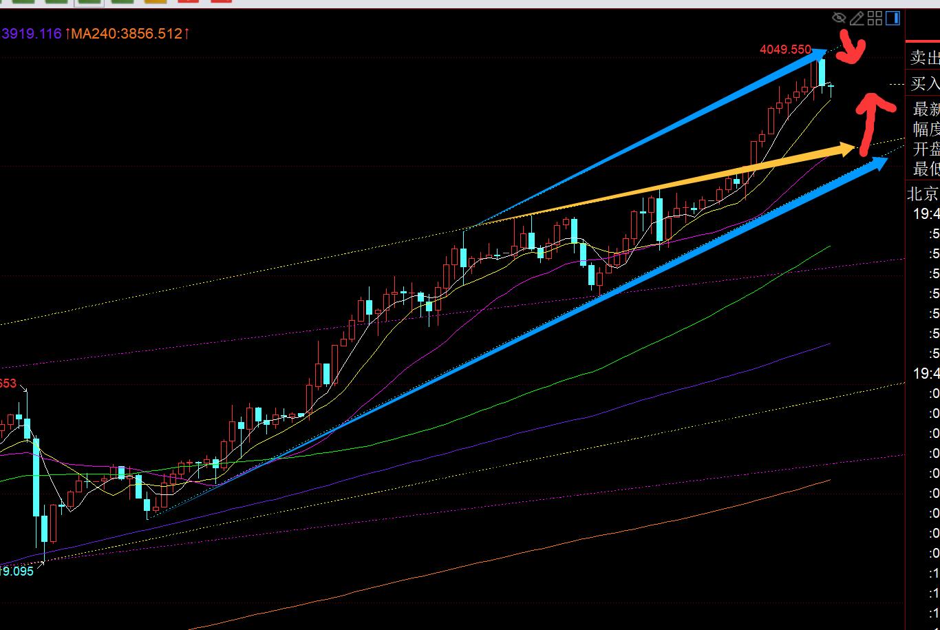 Terzo, il livello orario d'oro: ha chiuso fortemente ad un livello elevato durante la notte e il ciclo ha continuato a salire presto questa mattina. Solo all'apertura del mercato alle 6 o alle 7 hai osato inseguire direttamente il rialzo. Se lo guardi troppo tardi, non oserai proseguire, soprattutto se supera i 4000 e continua ad essere a breve termine. , senza dare alcuna possibilità di fare un passo indietro, temo che si rialzerà rapidamente, porterà il mercato a un livello elevato e si tufferà immediatamente in profitto; il prezzo di chiusura alle 19 è Yin K in alto, che copre a malapena il precedente Yang K, ma il supporto della media mobile 4030 a 10 è ancora lì, e nel processo di Yang continuo, è Yin per la prima volta, quindi non è possibile giudicare il cavallo. La tendenza al rialzo continuerà a diminuire; il mercato europeo continua a salire e a raggiungere livelli alti, e stasera ci sarà un secondo pull-up. Se il secondo pull-up sopprime ancora 4050 o sfonda 4050 e poi ricade per chiudere una pressione K, allora considera la possibilità di cercare una correzione; se si tratta prima di un pullback, allora fare affidamento sulla stabilizzazione al di sopra del mid-rail 4005 è rialzista e prepararsi per un secondo rialzo; se desideri una correzione importante, devi scendere sotto la soglia dei 4000 e scendere di nuovo, quindi potresti testare il minimo intraday o sfondarlo. La probabilità che ciò accada non è alta per il momento, quindi vediamola passo dopo passo;