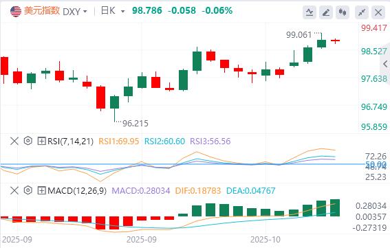 화요일 미국 달러 지수는 강세를 보이며 1주일 이상 최고치를 기록했고, 최종적으로 0.49% 상승한 98.59로 마감했습니다. 미국 3년 만기 국채 경매가 강력한 수요를 불러일으킨 후 미국 채권 수익률은 크게 하락했습니다. 현재까지 달러 가치는 98.78입니다.