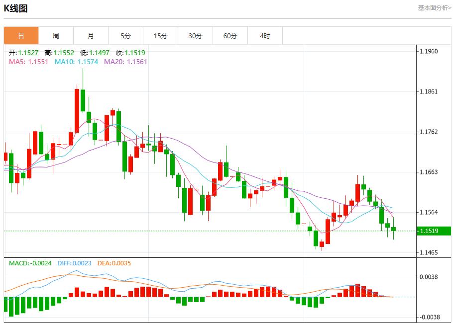 欧元/美元:截止北京时间21:20,欧元/美元下跌,现报1.1520,跌幅0.07%。纽市盘前,(EURUSD)的价格在最近的日内交易中下滑,这是由于1.1540的阻力位保持稳定,在主要下行趋势占主导地位以及短期内沿着小趋势线交易的背景下,同时在到达相对于价格走势被夸大的超买水平后,相对强弱指标开始形成负背离,并由此出现负面信号。