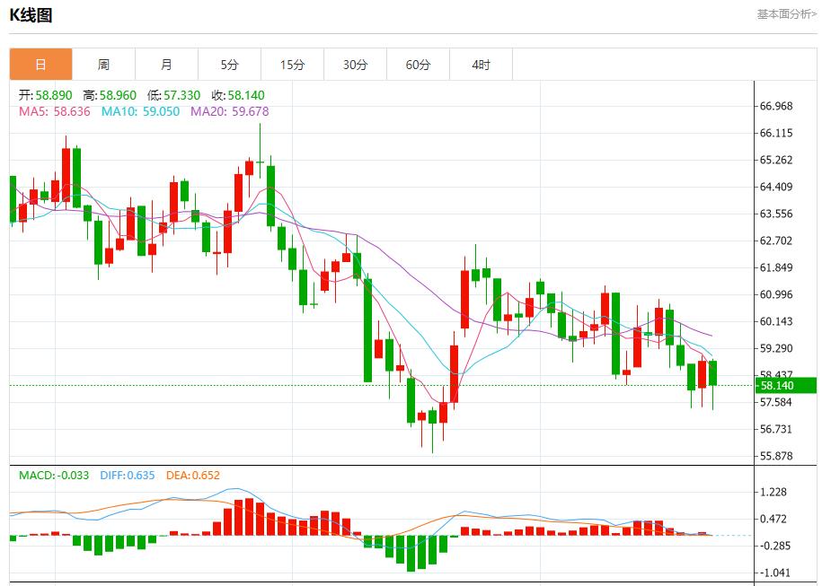 原油市场:截止北京时间21:20,美油下跌,现报58.130,跌幅1.21%。纽市盘前,(原油)价格在最后一次盘中交易中上涨,尽管其交易价格仍低于EMA50,继续承受负面压力,这强化了短期内空头趋势的主导性和稳定性,尤其是在价格沿趋势线交易的同时,加上在相对强弱指标达到超买水平后形成负背离,与价格走势相比被夸大,同时出现负面信号。