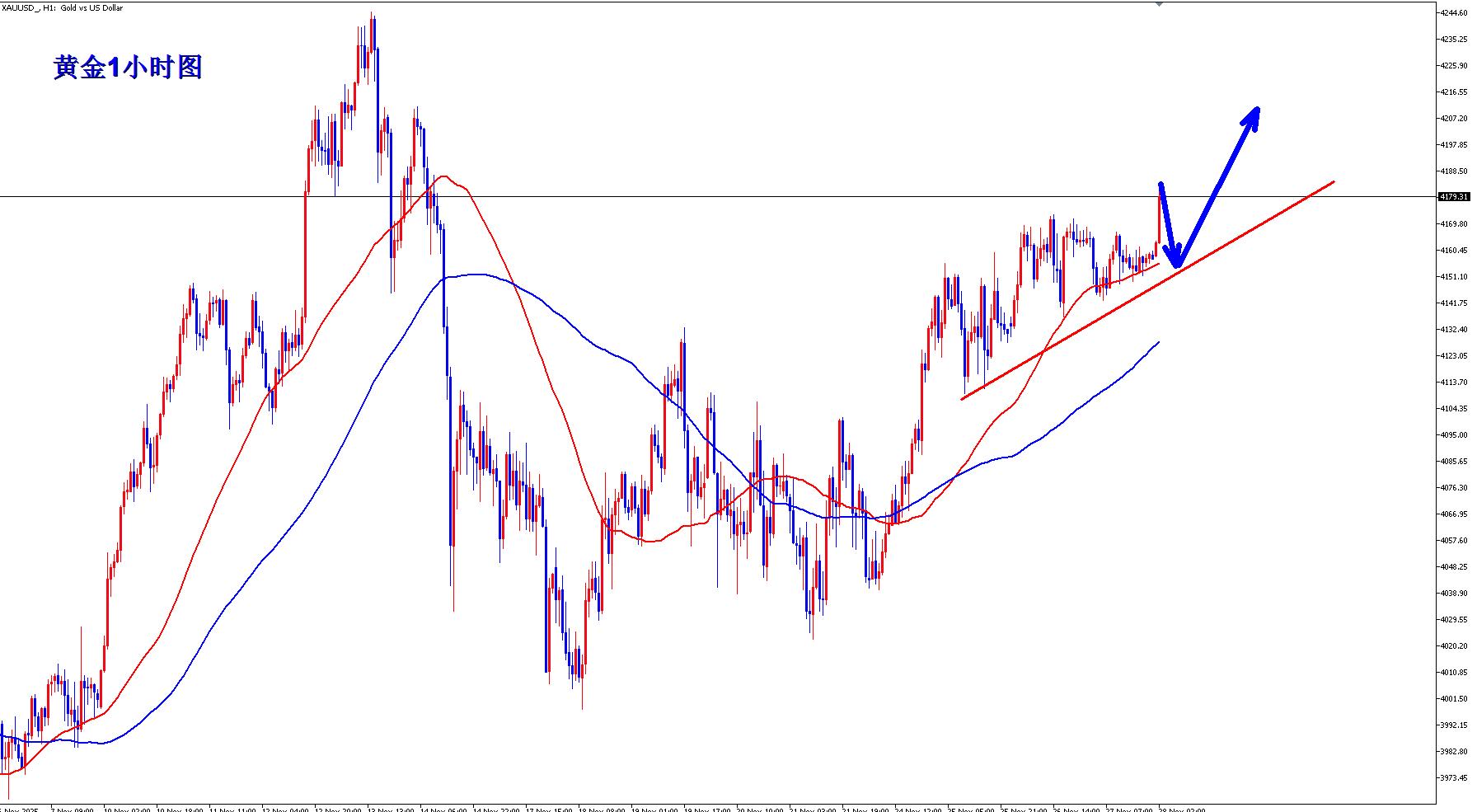 黄金1小时开始震荡上行的走势,黄金昨天4140区域也形成了有效的支撑,黄金今天回落还是继续顺势多,黄金短期回4150附近可以继续顺势多,黄金整体还是震荡向上的走势,而且早盘再次急速拉升,说明黄金多头已经跃跃欲试。