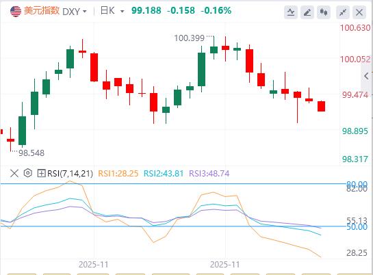 周二,特朗普积极暗示哈塞特为下任美联储主席,美元指数尾盘承压,截至目前,美元报价99.18。