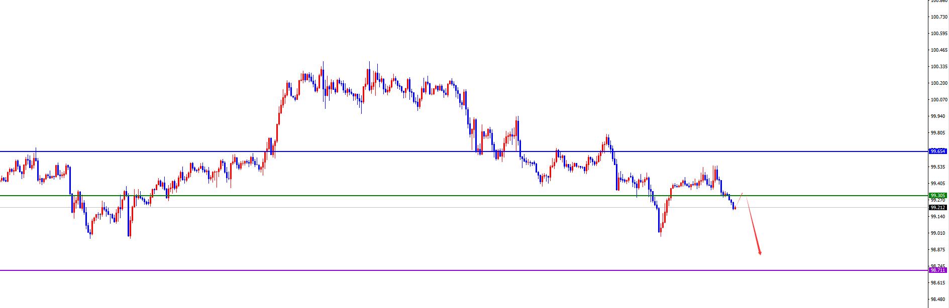 关键分水岭99.30-40区域,价格没有出现反转信号之前维持空