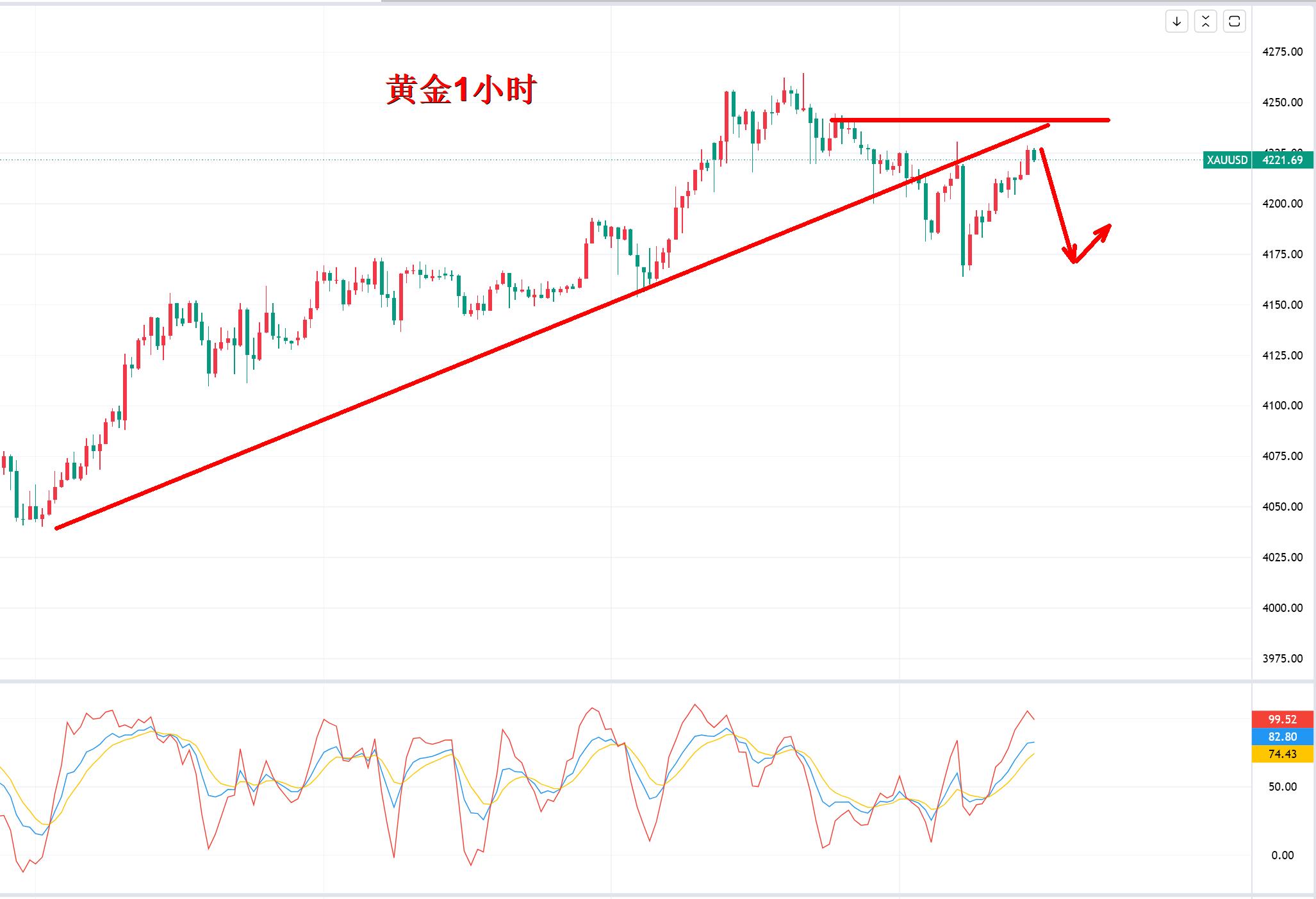 周二,我在《黄金,谨防突然掉头!》强调谨防多头突然反转,果然亚欧盘弱势下跌,美盘前反弹典型“诱多”,拉高到4230美元后加速下跌到4160美元。